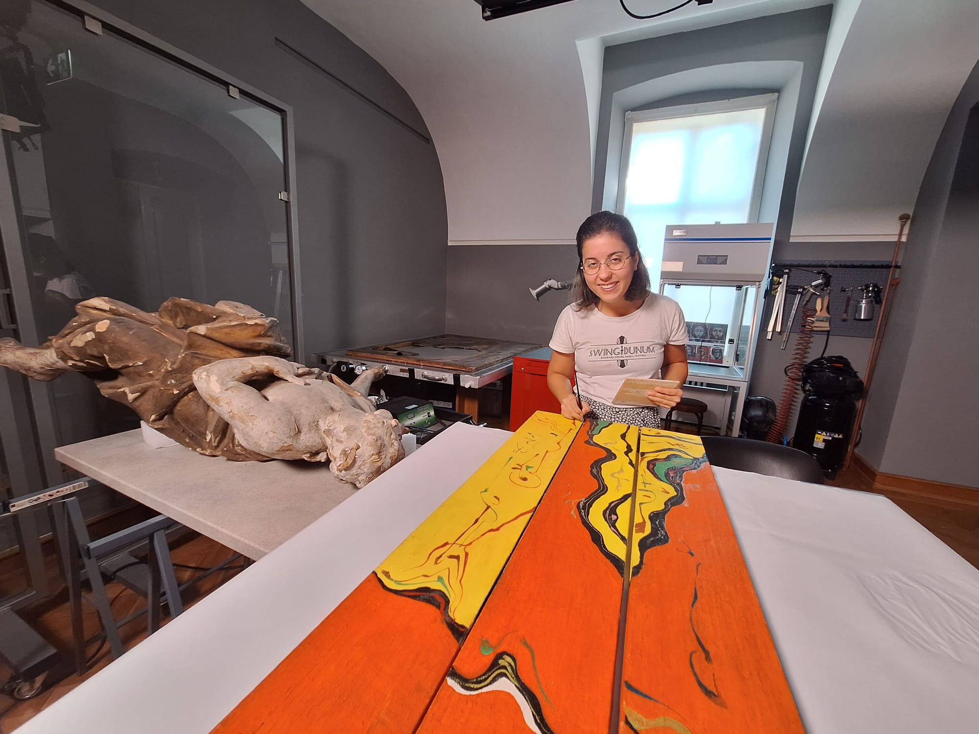 Muzeul de Artă din Timișoara beneficiază în anul Capitalei Culturale Europene de mai multe dotări importante. În cadrul laboratorului vizitabil de restaurare a operelor de artă, piesa de rezistență o reprezintă un microscop, unic într-un muzeu din România, deținut doar de companii private, care a costat 775.000 de lei. În laborator face practică Anastasija Antić, o tânără masterandă din Serbia.