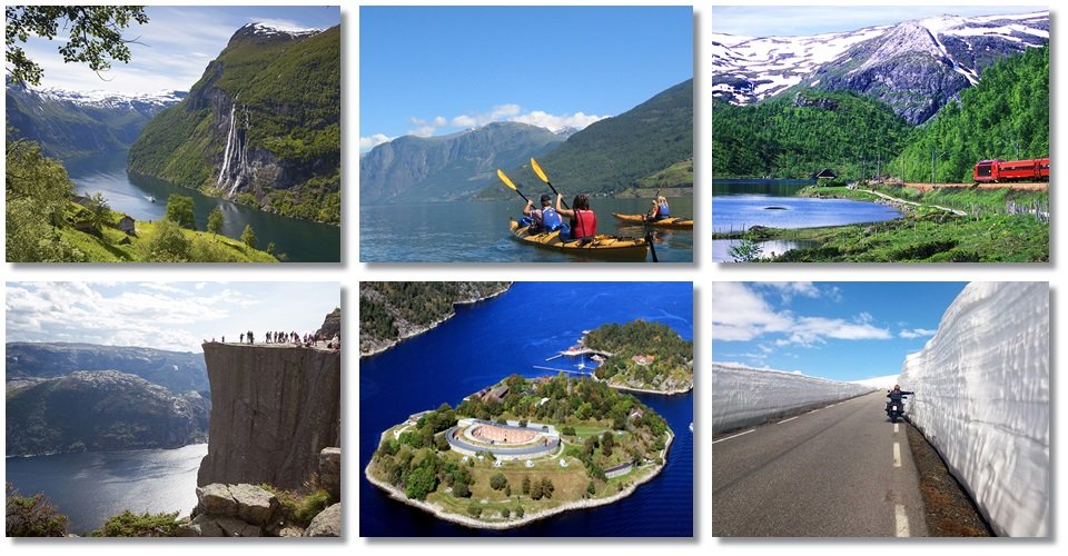 Fiordurile ocupă partea de vest a Norvegiei și sunt rezultatul acțiunii îndelungate a ghețarilor asupra terenului muntos. Rezultatul este unul care pur și simplu taie răsuflarea privitorului. Fațadele muntoase abrupte se îmbină cu cascadele care par nesfârșite și plajele aproape nelocuite. Nu e de mirare că aceste obiective sunt considerate minuni naturale, cunoscute și apreciate la nivel mondial.