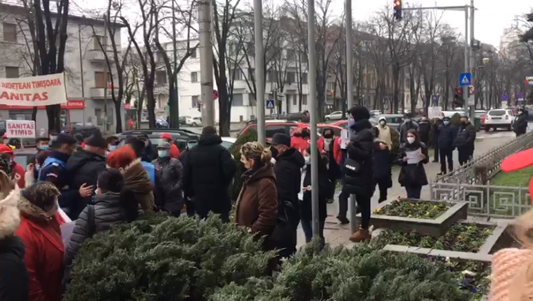 Asociația sindicaliștilor Sanitas din România a anunțat încă de săptămâna trecuta proteste în fața prefecturilor județene. Se protestează pentru respectarea legii salarizării personalului plătit din banii publici. Protestatarii de la fața locului susțin că nu s-au alocat nici sporurile de risc.