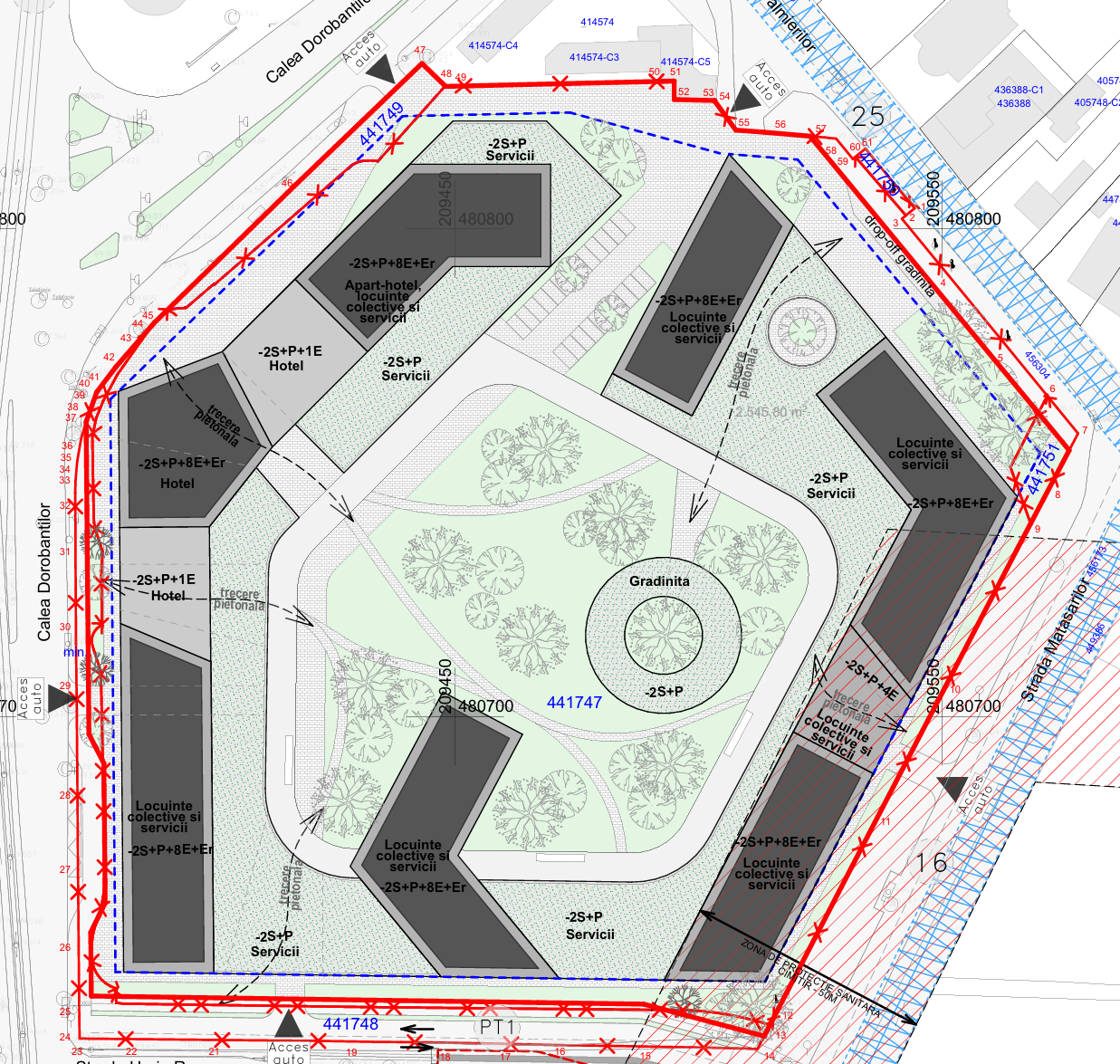 Suprafața totală a terenului va fi de 31.861 metri pătrați. Dintre aceștia, aproape 18.000 vor fi folosiți pentru construcții. Drumurile de incintă, aleile și parcările vor ocupa 2.300 de metri pătrați, iar spațiile verzi – încă 9.600 mp. Vor mai fi cedați 1.800 mp pentru realizarea unor drumuri publice.