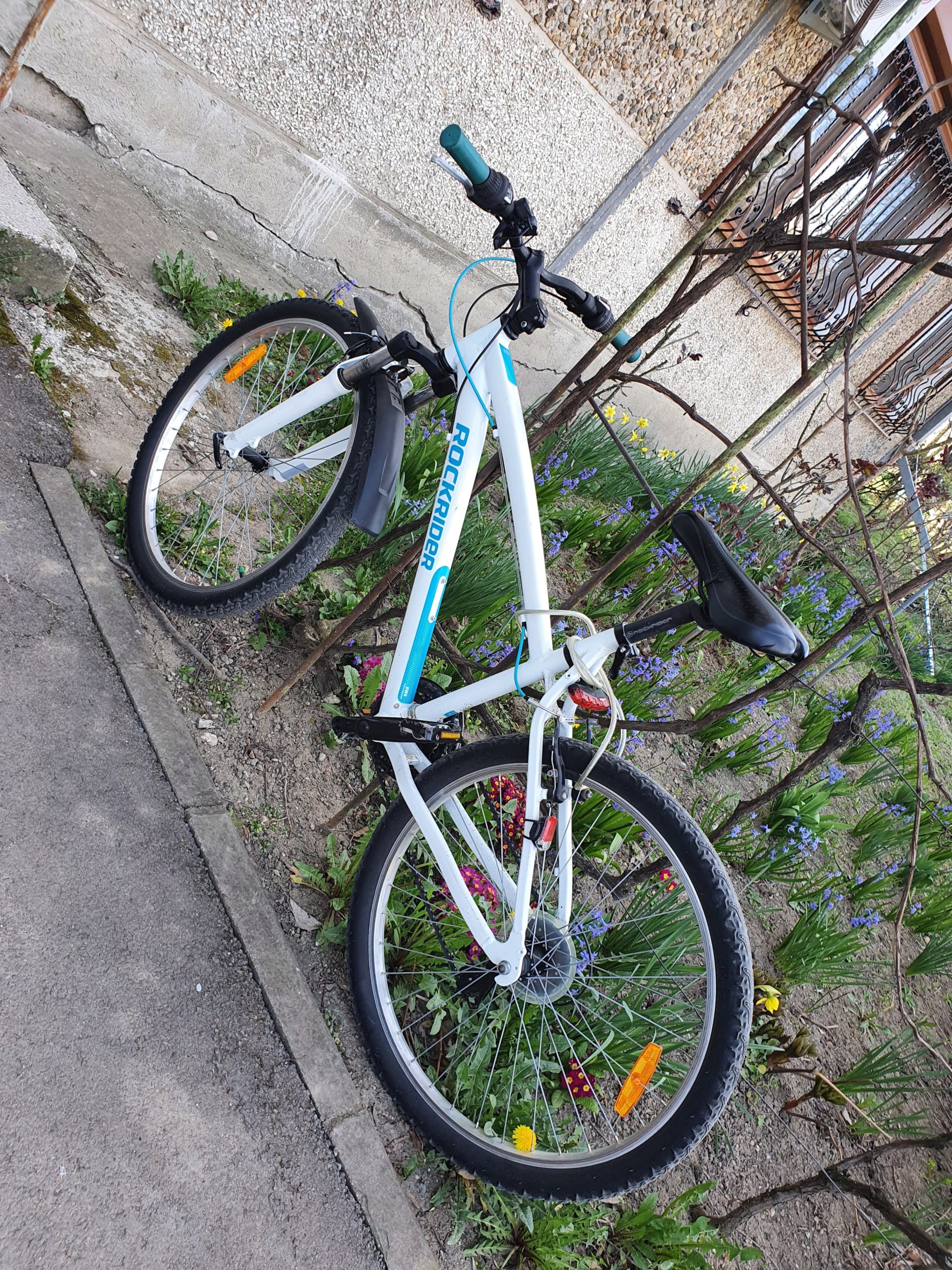 Bicicleta Rockrider este de culoare albă, cu albastru. Cei care pot oferi informații despre ea sunt rugați să ia legătura cu proprietarul la numărul de telefon 0745780925.