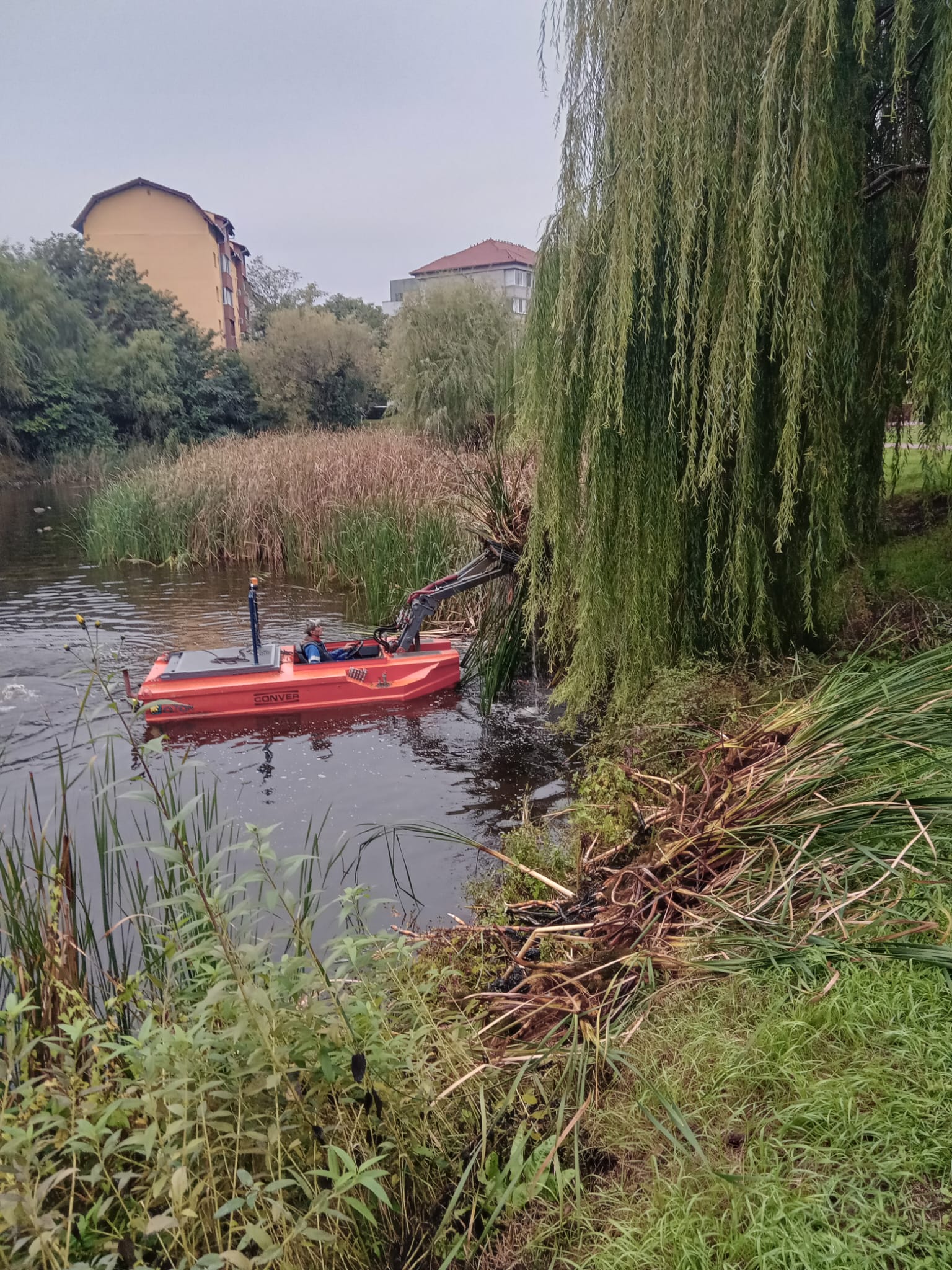 Astfel, marți, Primăria Timișoara s-a apucat de treabă împreună cu Administrația Bazinală de apă Banat (ABAB) și STPT. ABAB a trimis acolo un utilaj special care curăță Balta Lămâița din zona Freidorf, iar STPT participă la acțiune cu o macara.