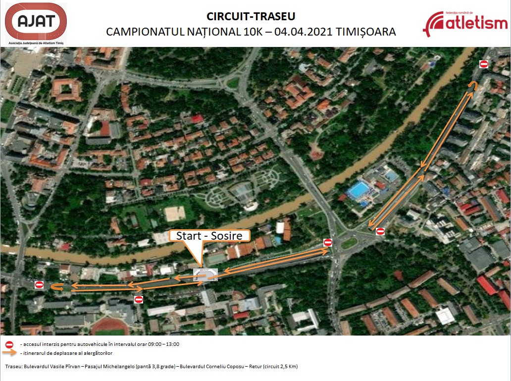 Potrivit organizatorilor, „pentru buna desfășurare a acestei competiții majore de atletism, se va interzice accesul circulației în intervalul orar 8:30-13, pe următoarele segmente de drum: