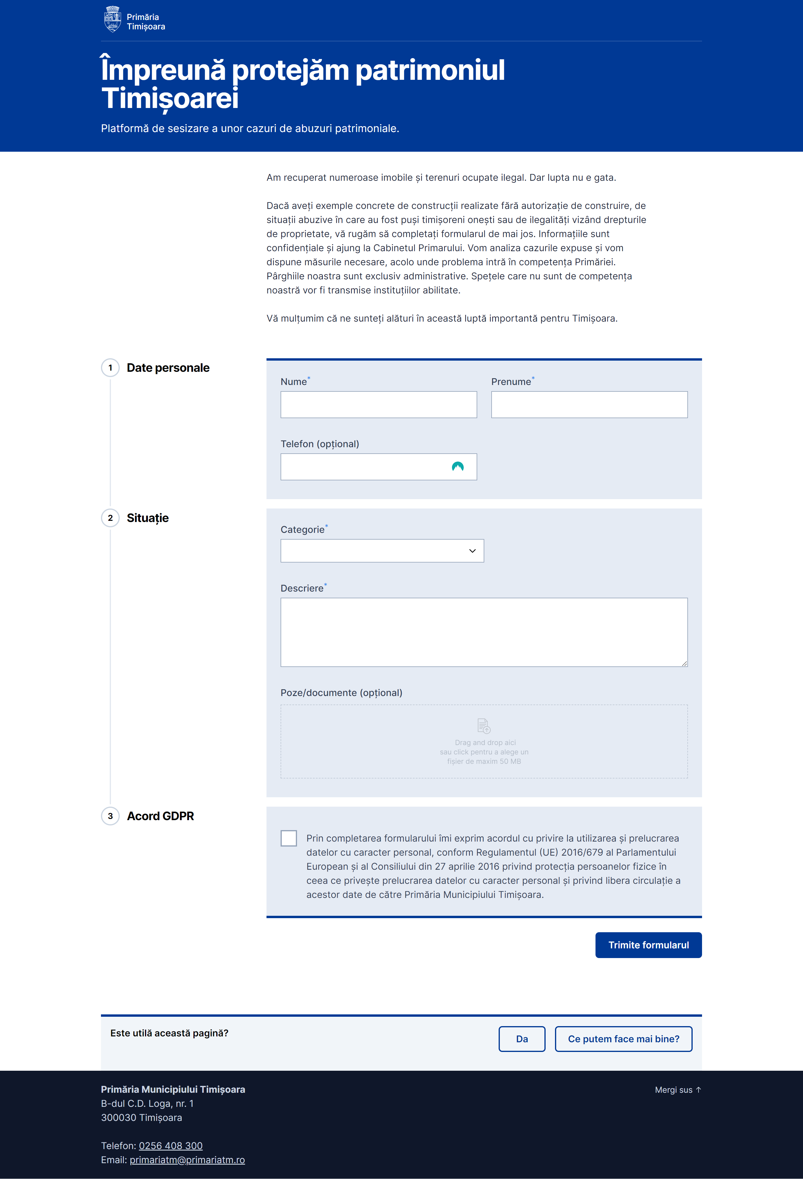 Ne așteaptă o luptă lungă și foarte grea. De aceea, am considerat vital pentru lupta pe care o ducem pentru recuperarea patrimoniului să creăm un sistem în care să colectăm aceste informații. Tot ceea ce oamenii trimit pe stopabuz.primariatm.ro va ajunge la mine și la echipa mea restrânsă, le vom analiza și corela cu dosare pe care deja le avem în lucru. Îi rog să nu le mai fie frică și îi asigur că nu mai sunt singuri. (…)