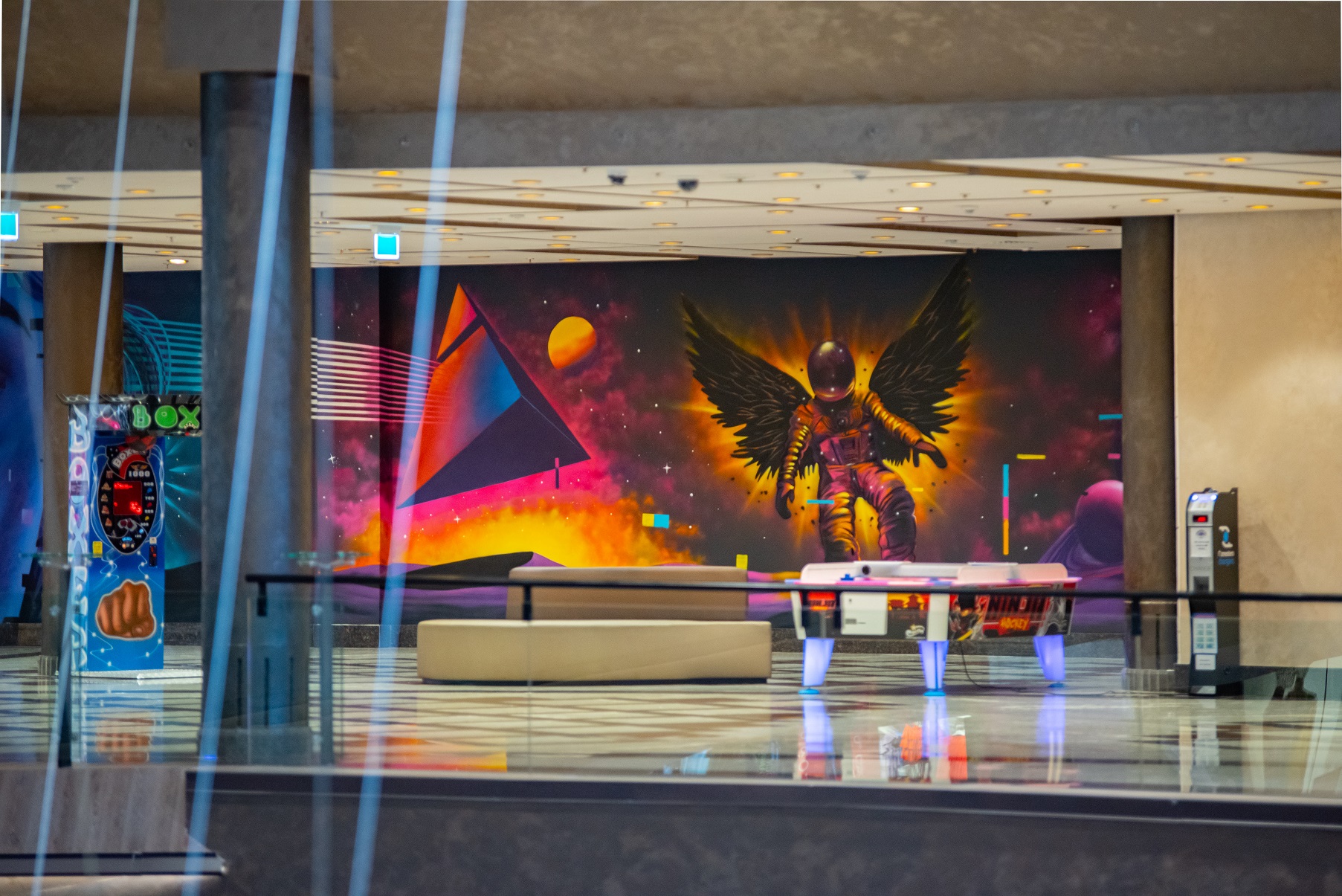 Cele mai interesante poze din Social Media sunt cele care au un background impresionant, iar graffiti-urile suprarealiste pot fi alegerea perfectă pentru o sesiune foto. O veritabilă operă murală, care îmbină feminitatea, curajul și eleganța cu personaje fantastice și elemente vizuale inedite, a fost realizată la etajul Iulius Mall, în zona magazinului Sizeer. Artistul Flaviu Roua, cel care a avut drept „șevalet” pereții din mall, este absolvent al Universității de Vest și este colaborator FISArt Timișoara, alături de care aduce în atenția publicului fenomentul street art și graffiti.