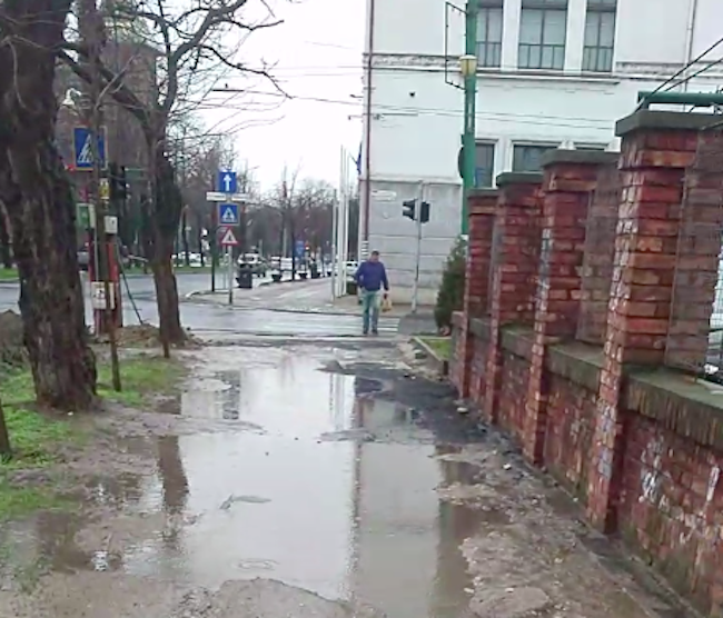 Nici acolo unde s-au asfaltat nu e mai bine. Pe Ion Roată Nr 6 administratorul firmei de acolo în complicitate cu firma care a asfaltat trotuarele, a scos doi pomi plantați de primărie și a amenajat loc de parcare. Iar pe trotuar stă apa. Nu interesează pe nimeni. Asta e nesimțirea din primăria Timișoara.