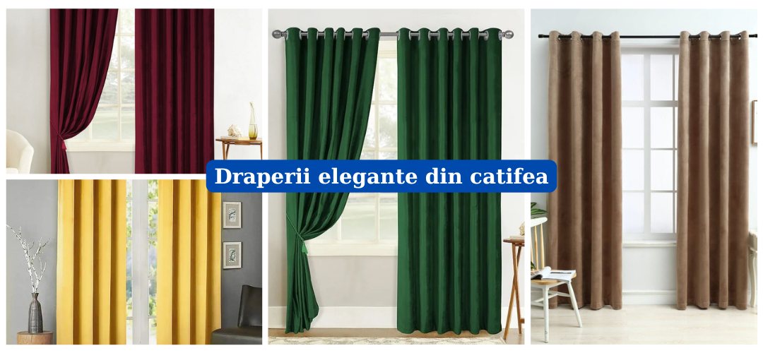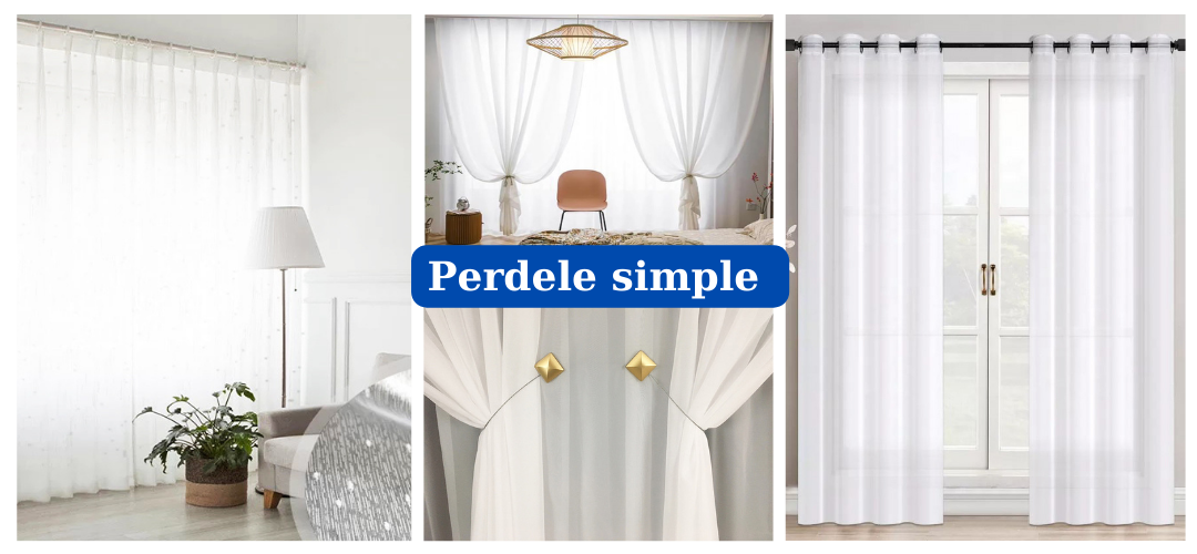 Câteva din Perdelele și Draperiile pe care le găsiți la noi: Perdele simple din voal, Perdele cu aspect natural, Perdele cu fir de bambus, Perdele din mătase, Perdele brodate, Draperii Blackout, Draperii din Catifea, Draperii soft, Draperii cu model, etc.