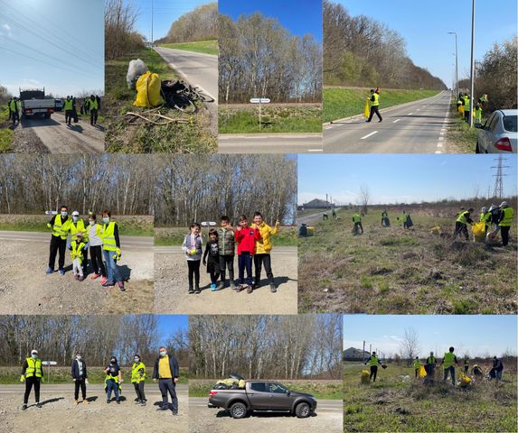 Acțiunea a început sâmbătă de dimineața, iar aproximativ 60 de voluntari, printre care și copii, au ieșit să adune deșeuri pe Calea Timișoarei și în apropierea căii ferate de la Pădurea Verde, pe drumul spre Giarmata Vii.