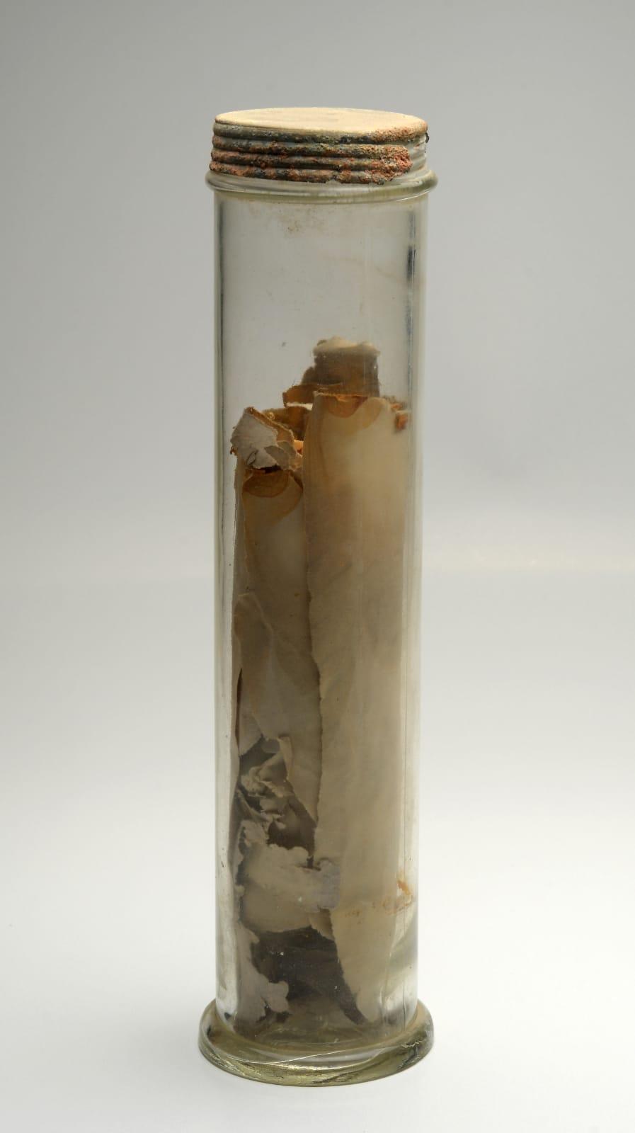 Manuscrisul scris cu mai bine de 130 de ani în urmă a fost pus într-un recipient de sticlă.