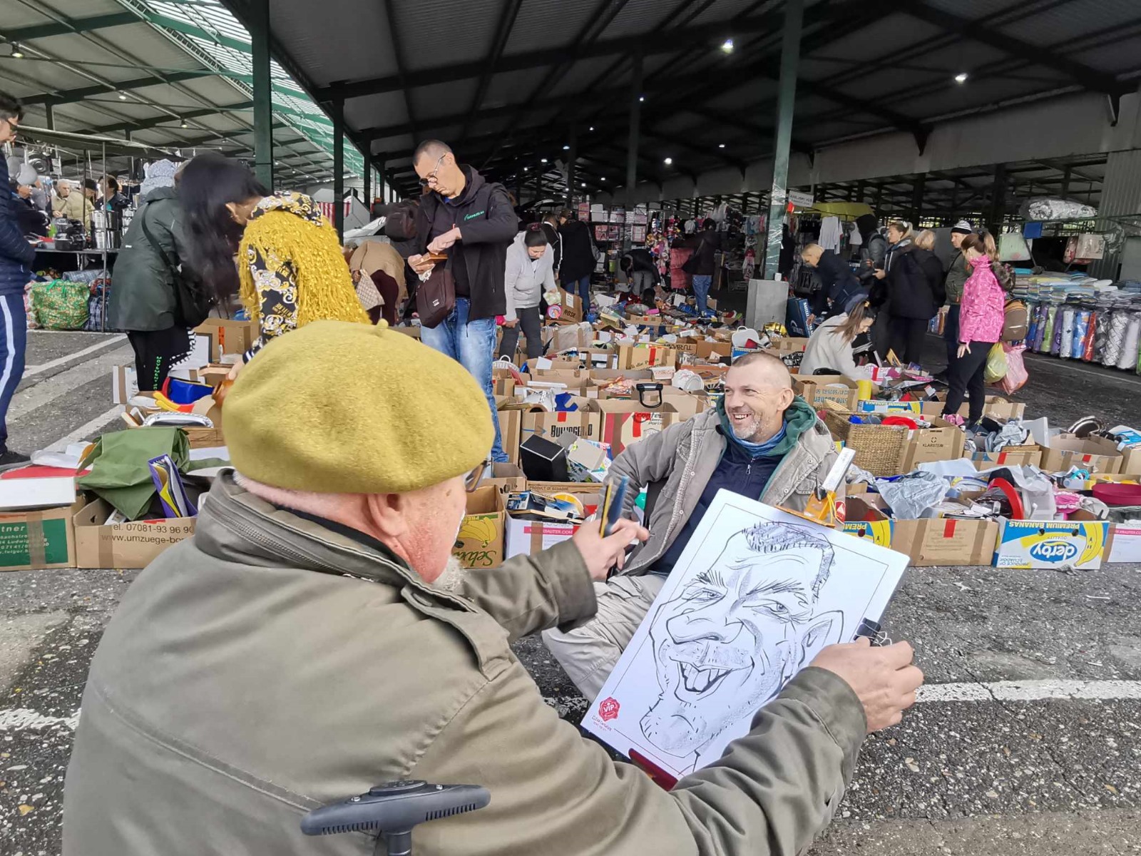 Clețiu a ajuns în piața de vechituri din Novi Sad în cursul zilei de sâmbătă 11 noiembrie și a făcut caricaturile câtorva oameni care au venit să facă piața. A fost prima oară când artistul a ajuns într-o piață pentru a-și etala talentul.