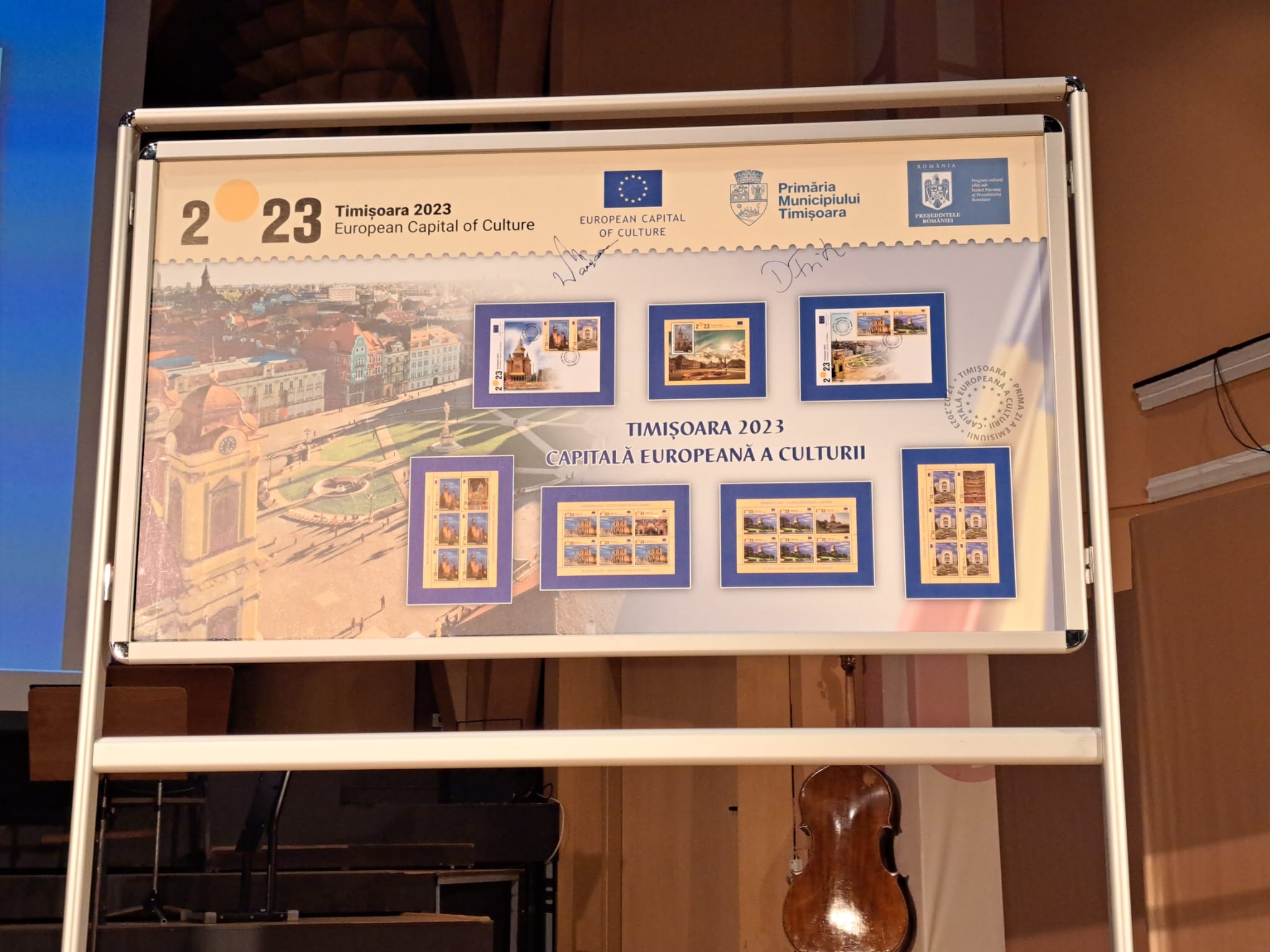 Alcătuită din patru timbre, o coliță dantelată și două plicuri, emisiunea marchează rolul pe care și l-a asumat orașul de pe Bega de a da ora exactă în cultura continentului în acest an.