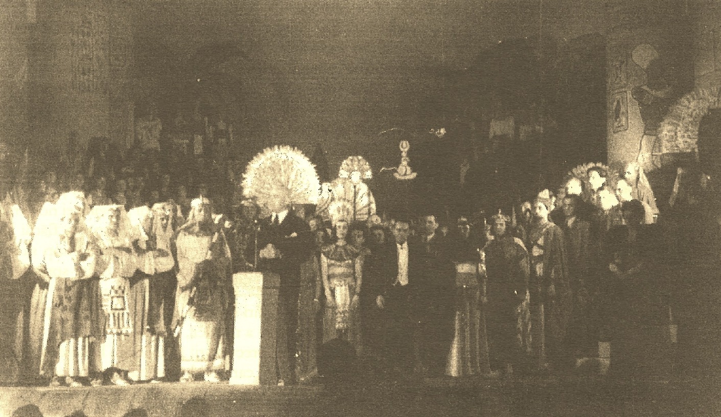 Prim-ministrul Dr. Petru Groza, vorbind publicului, la premiera operei Aida de Giuseppe Verdi, 27 aprilie 1947