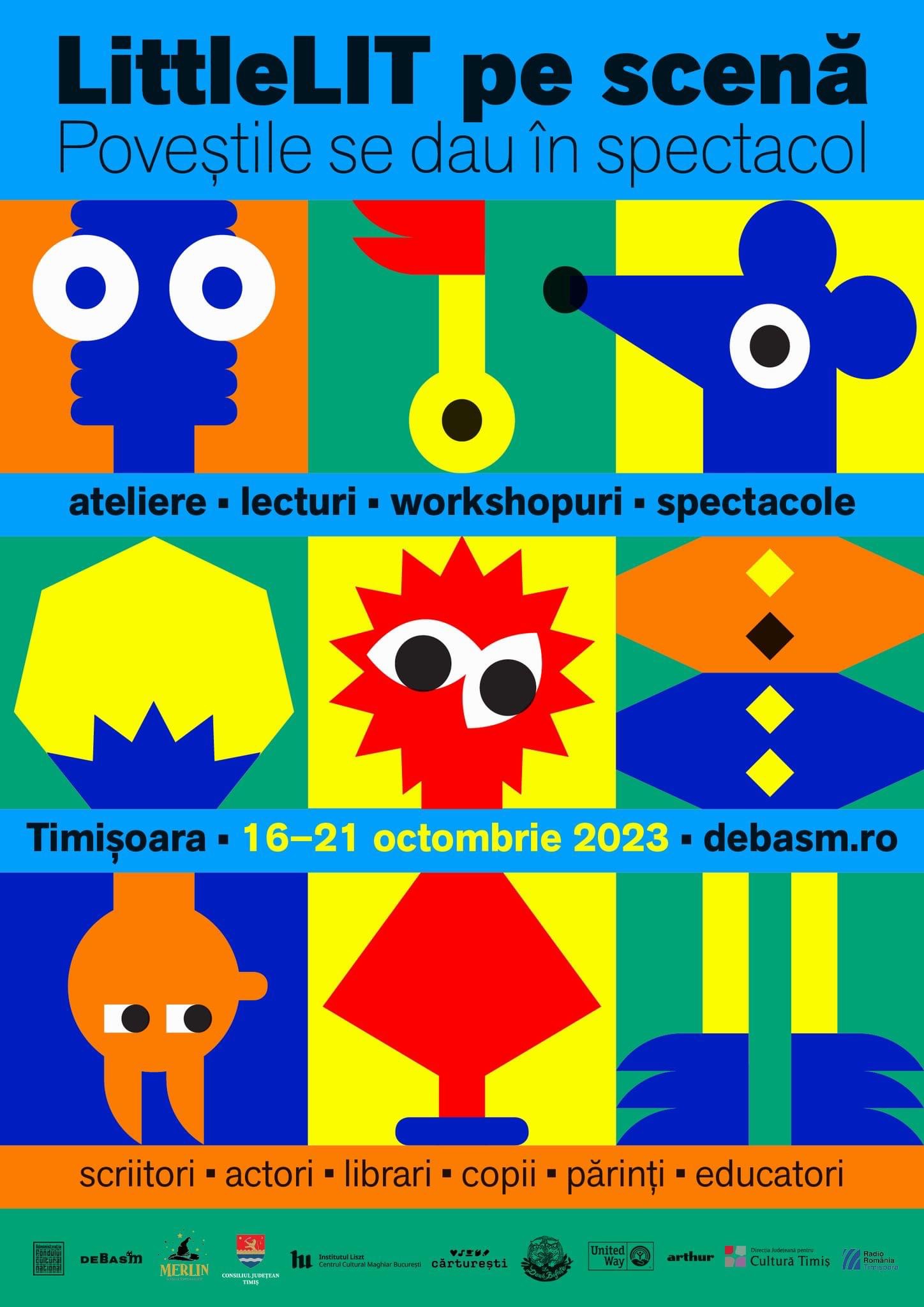 La Timișoara, în perioada 16 – 21 octombrie vor fi șase zile dedicate literaturii și teatrului pentru copii, iar Teatrul pentru Copii și Tineret „Merlin” se numără printre partenerii de seamă ai De Basm, Asociația scriitorilor pentru copii și adolescenți în proiectul „LittleLIT pe scenă – Poveștile se dau în spectacol”.