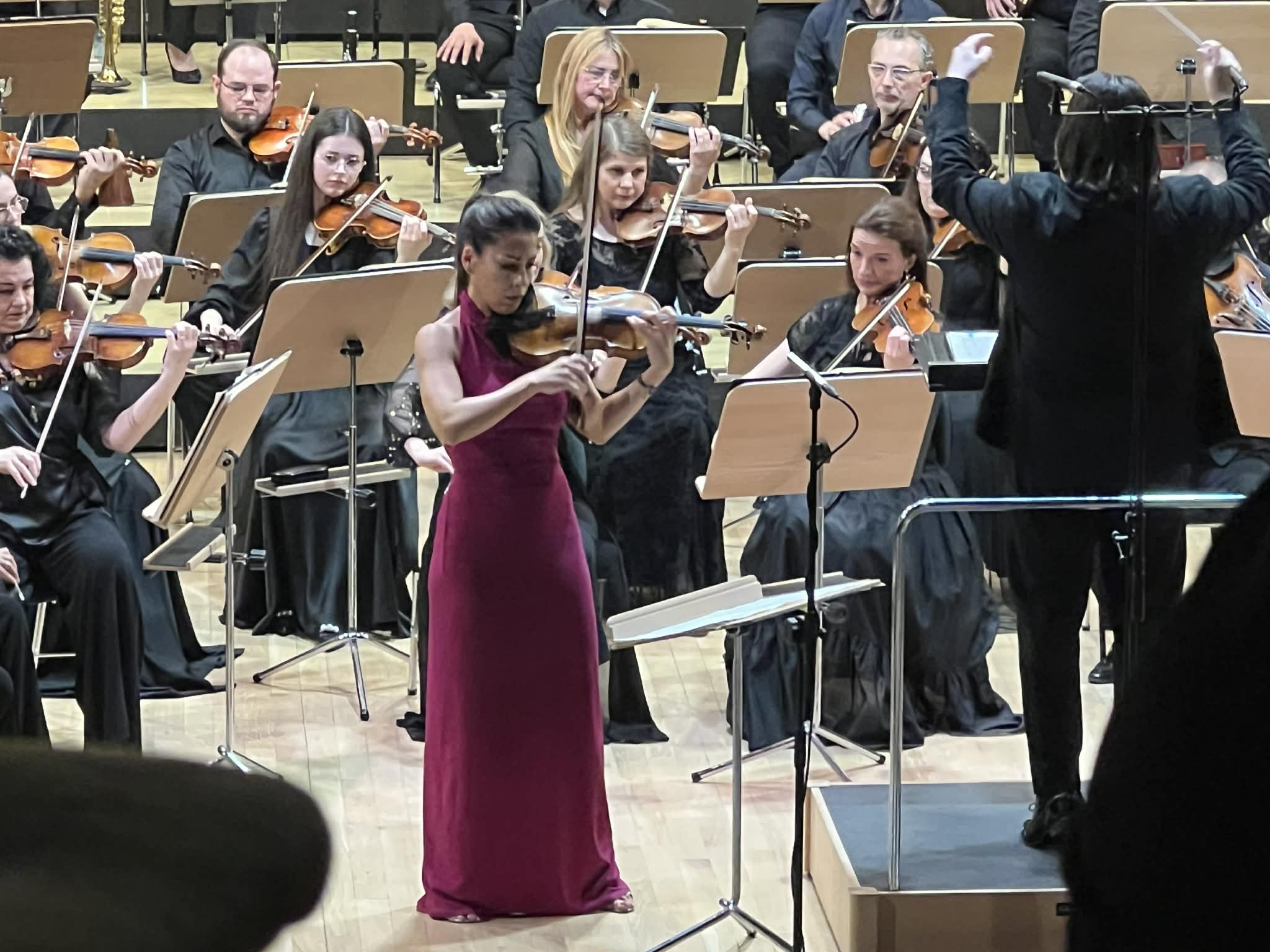 Între cele două partituri de Liszt, scena filarmonicii și toată atenția sălii i-au aparținut solistei invitate, Leticia Moreno, care a propus Concertul pentru vioară și orchestră nr. 2, de Karol Szymanowski, fascinant și rebel compozitor polonez, prea rar prezent în programele filarmonicilor din România. Expresivă, pasională, aproape dansând în cadența intensă a partiturii, violonista spaniolă de origine peruană a captivat audiența cu o interpretare sangvină, expresivă, de o sinceritate dezarmantă și o tehnică impecabilă, sensibilă la relația cu orchestra, mizând pe fluiditatea partiturii și pe integrarea organică a pasajelor solistice în arhitectura orchestrală. Aplauzelor îndelungi și tumultoase, Leticia Moreno le-a răspuns cu virtuozitatea unui biss de Bach.