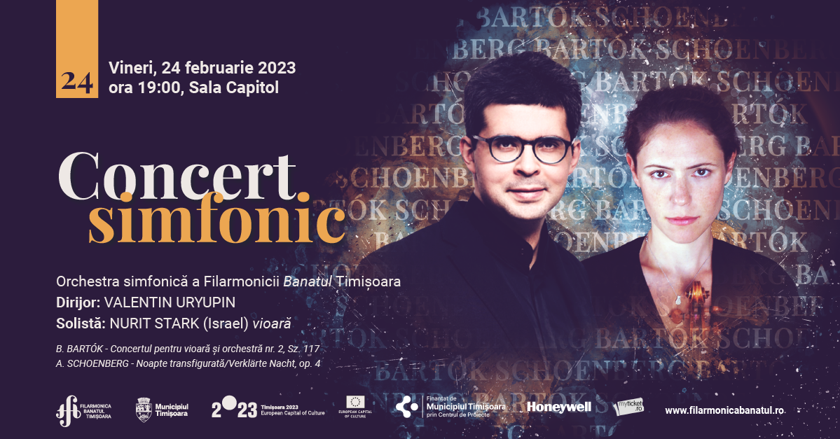 Concertul simfonic din 24 februarie, care va începe la ora 19, va fi dirijat de maestrul Valentin Uryupin. În program: Concertul pentru vioară şi orchestră nr. 2 Sz 117 de Béla Bartók şi Verklärte Nacht de Arnold Schönberg.