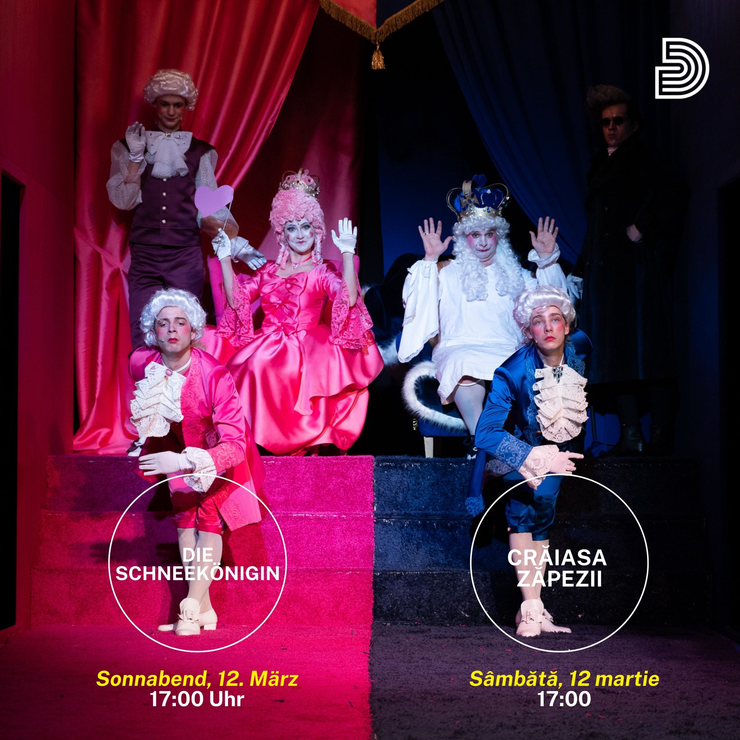 În weekend, urmează trei reprezentații din cea mai nouă producție a Teatrului German – spectacolul „Crăiasa Zăpezii” de Evgheni Schwarz, în regia lui László Béres. Vor avea loc pe 12 martie, de la ora 17 și pe 13 martie, atât de la ora 11, cât și de la 17.