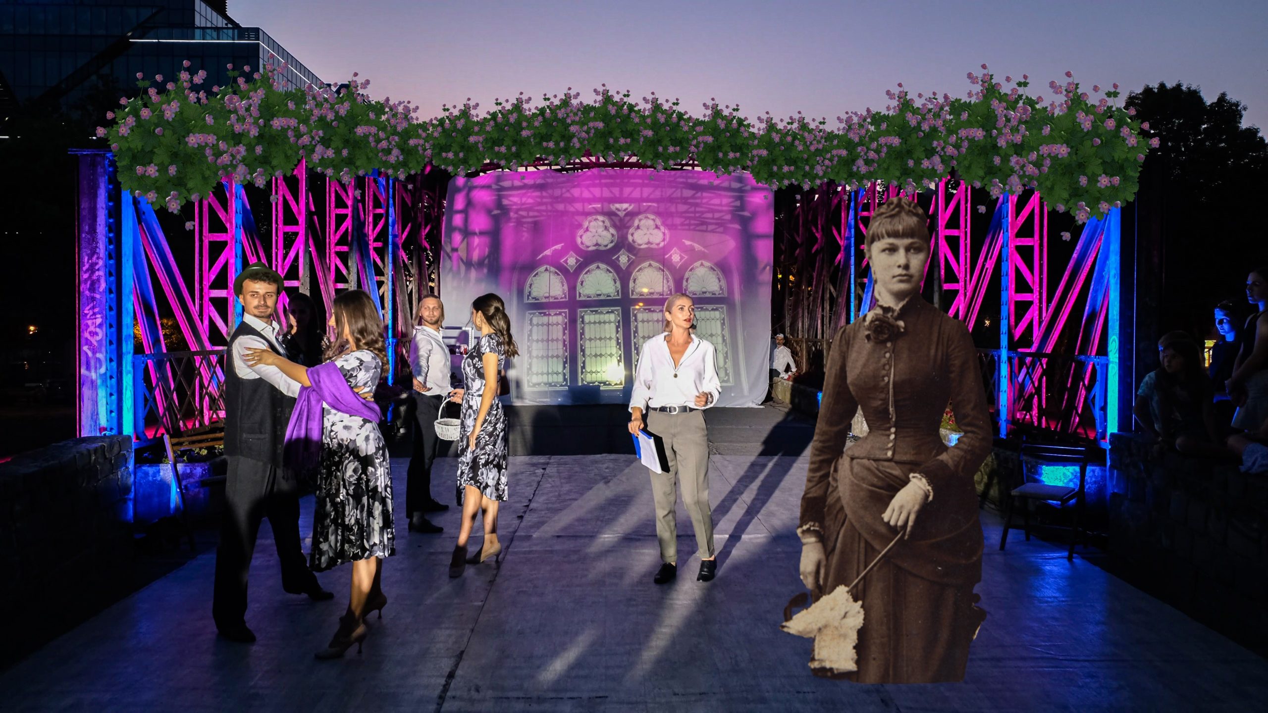 Elementele de realitate augmentată și imaginile de arhivă cu unele clădiri emblematice îmbogățesc descoperirea prin dans a vieții cotidiene din aceste cartiere istorice ale orașului de pe Bega.
