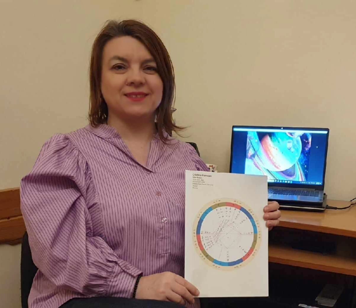 Eu de profesie sunt economist. Am terminat Facultatea de Management în Turism, dar nu am profesat. După ce am terminat facultatea, am decis să devin cosmeticiană. Am urmat tot felul de cursuri de cosmetică, de estetică, de make-up și am lucrat 15 ani în domeniu. Pe urmă a venit pandemia și am căutat să mă reorientez, să fac altceva, parcă sufletul meu mă chema să mă descopăr, să mă autodescopăr. Dar dacă mă întorc în trecut, în copilărie am fost atrasă de astre și astrologie. Am primit și o carte cadou atunci pe care nu am înțeles-o. Pe urmă, prima dată mi-a făcut astrograma domnul Alexandru Nicolici. Am descoperit o altă lume, adică era foarte fascinant și magnific cum o persoană poate din data mea de naștere să știe atât de multe despre mine. Și în decursul anilor m-a pasionat tot mai mult astrologia, iar în timpul pandemiei, cumva sufletul meu s-a îndreptat spre această știință, că de fapt este o știință și o artă. În același timp, astrologia se bazează pe calcule matematice și este o artă pentru că se decodifică anumite simboluri din astrogramă.