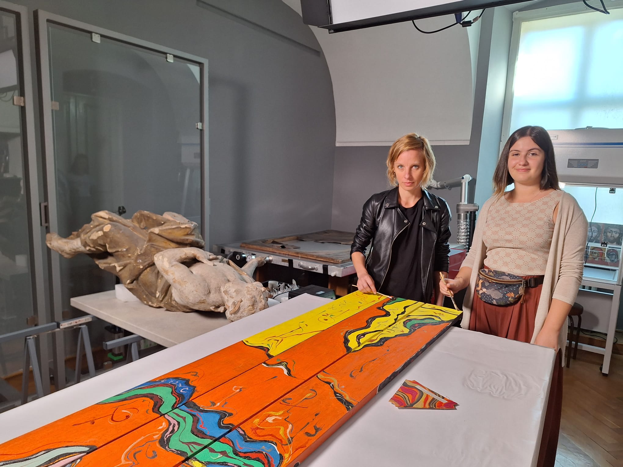 Magda Babău: Evident, minimum cele opt ore din cadrul programului la muzeu, dar pe lângă citim diverse articole și ne interesăm de tendințe actuale, care sunt mereu în schimbare în domeniu restaurării. Se descoperă tehnici, materiale noi. Recent am avut la muzeu o conferință internațională YOCOCU, care aborda tendințele de restaurare green, adică ecologice, folosind materiale care nu sunt toxice pentru utilizator. În cadrul restaurării, acesta este un aspect destul de important pe care încercăm să aplicăm în munca noastră de zi cu zi.