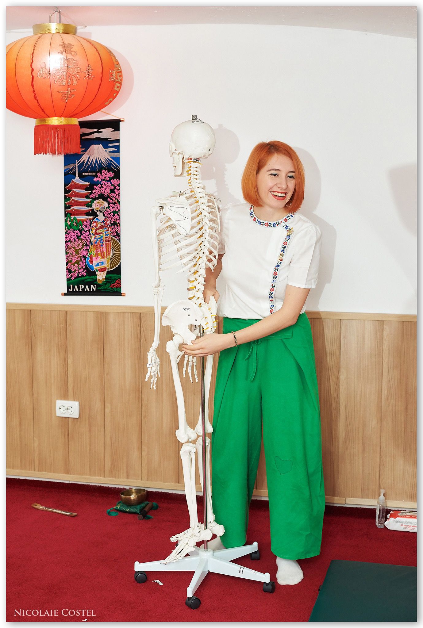 Tot ce înseamnă afecțiuni musculoscheletale, vorbim de probleme cervicale, umeri, între omoplați, probleme de brațe, braț amorțit, dureri de coloană, dureri de bazin, dureri de genunchi, dureri de gleznă. Dar, pe lângă afecțiuni, masajul pe care l-am învățat se îmbină și cu elemente de medicină chineză. Și când vorbim de medicină chineză, vorbim de meridiane, ajută inclusiv pentru burnout, sistem nervos, sistem digestiv. Mai avem reflexoterapia, care lucrează foarte bine pe tiroidă. Se numește reflexoterapie pentru că este răspunsul organelor către creier și nervii care trec prin talpă. În 2024, am învățat masajul Chi Nei Tsang, șapte ani am visat să ajung la curs. Este un masaj abdominal de rejuvenare a organelor interne și de reîntinerire și pentru burnout, protocolul durează două ore, aici e știință.