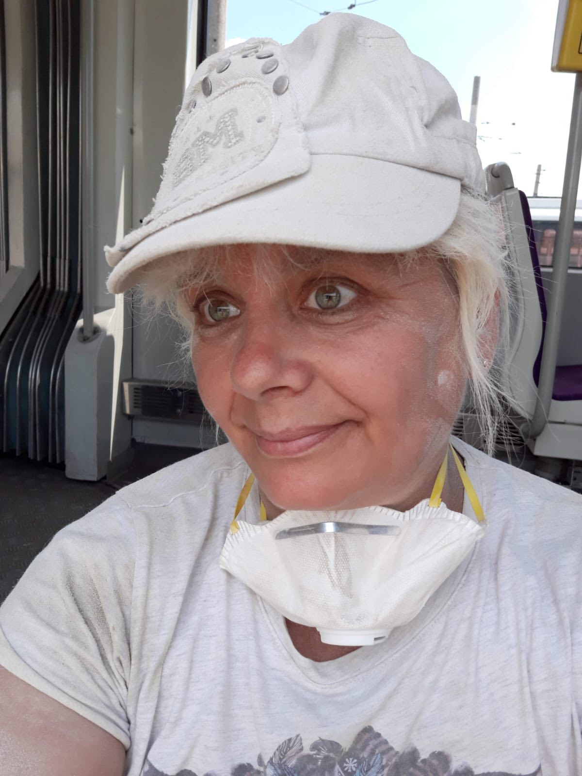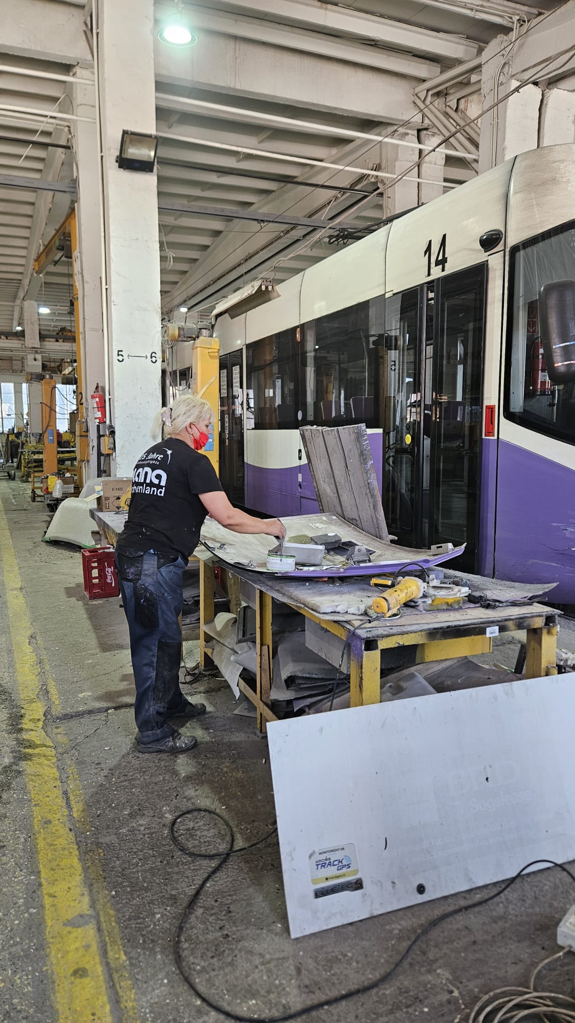 Dacă este nevoie, da, mă duc la ei și îi rog să mă ajute, nu-i problemă. Colegii știu că pot să-mi fac treaba. Mă ajută unii mai ales când e vorba de exfoliat tramvaie. Când expiră reclamele, trebuie date jos și e un pic mai greu, într-adevăr. De exemplu, luna trecută am dat abțibildurile jos de pe două tramvaie cu ajutorul colegilor și apoi le-am vopsit.