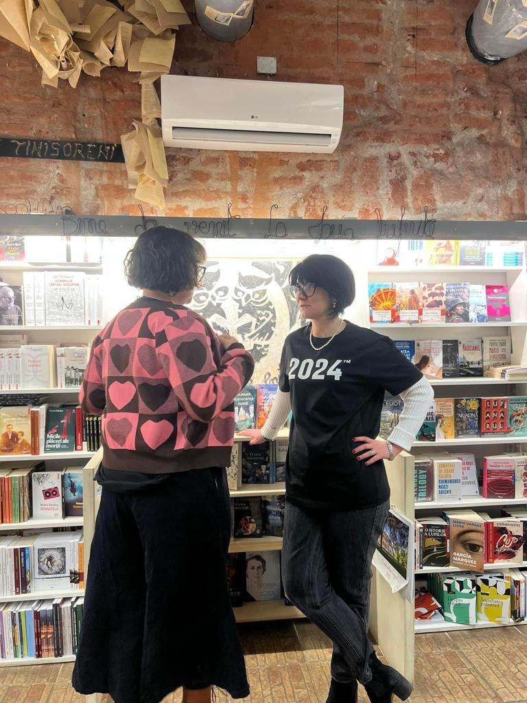 Oana Doboși: După ce am terminat studiile, am lucrat împreună la Universitatea de Vest, apoi la Asociația Timișoara Capitală Culturală Europeană, am fost în organizarea Festivalului Internațional de Literatură de la Timișoara și, la sfârșitul lui 2015, am zis că suntem pregătite să începem propria noastră afacere. Atunci ne-am zis «hai să facem o librărie» și așa am început. Am înființat firma în ianuarie 2016 și, practic, un an de zile a durat să pregătim spațiul, să contactăm editurile, să facem un plan cu tot ceea ce vrem să facem. Am deschis librăria în 2 decembrie 2016, deci acum șapte ani.
