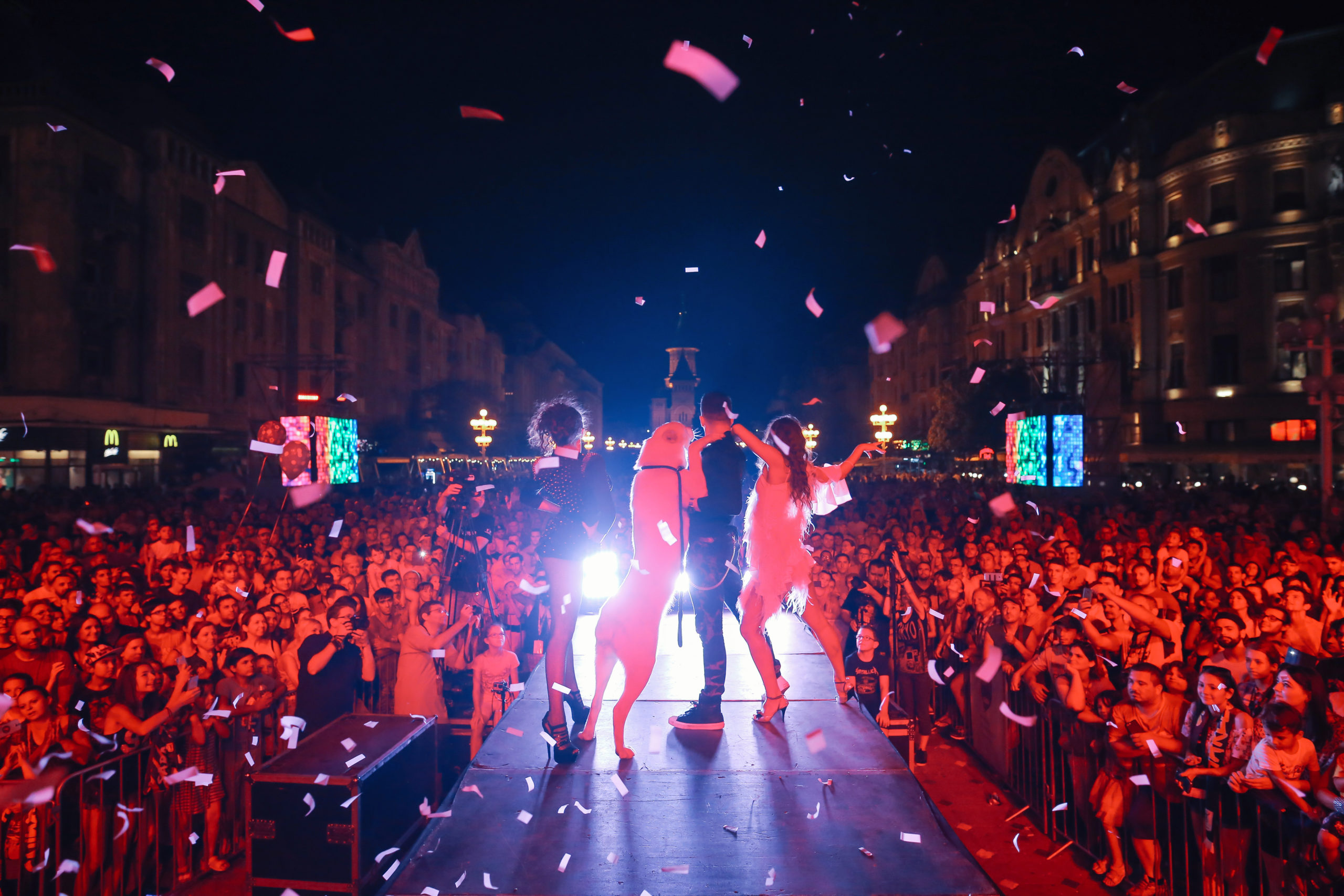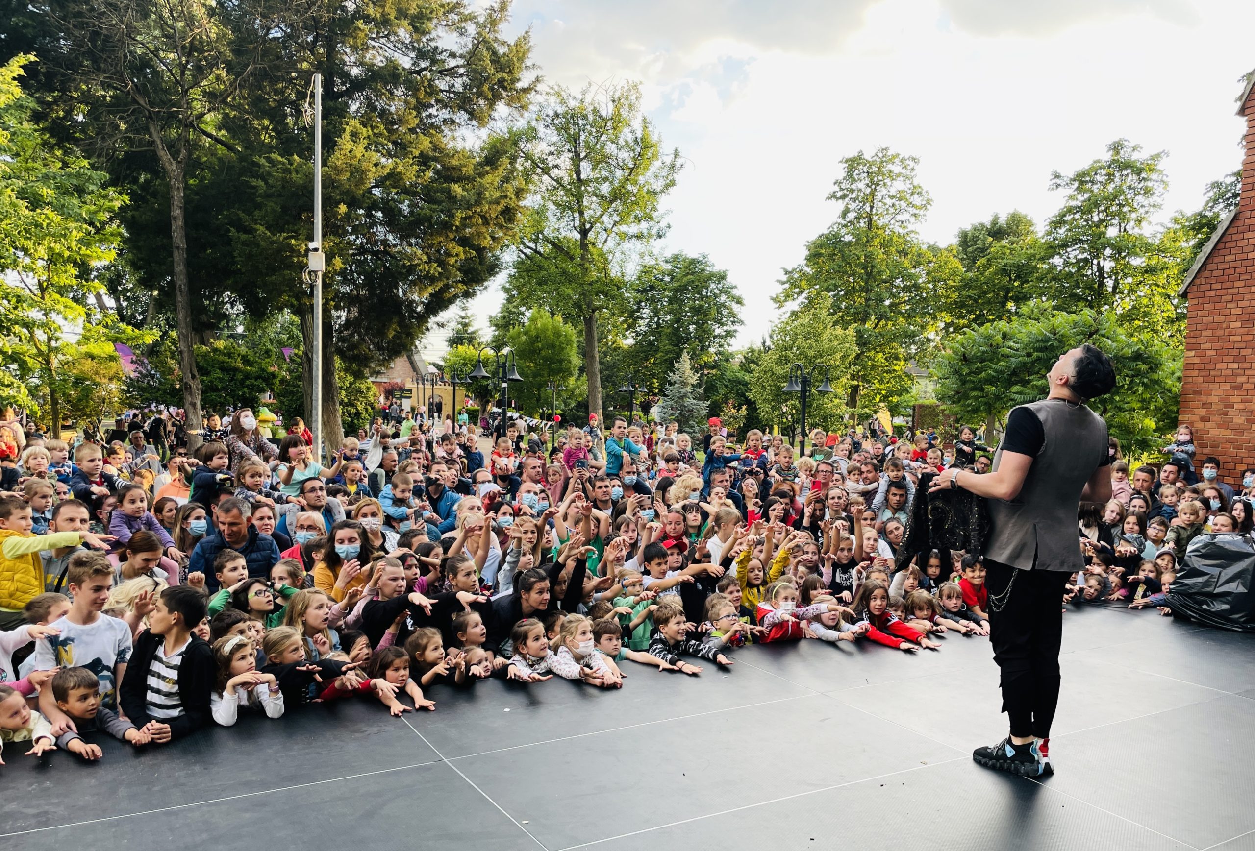 Fac evenimente pentru zona corporate în limba română, în limba spaniolă, în limba engleză și am mai făcut și în limba germană. Și sunt foarte multe evenimente corporate, în special în perioada următoare, pentru că sunt Christmas party-urile și petrecerile de final de an, care mai nou, în ultimii ani, se extind până în luna ianuarie, pentru că sunt prea multe companii foarte mari în Timișoara și la Cluj care nu găsesc suficiente săli. De exemplu, companiile mai mici sau cu bugete mai restrânse optează pentru un show pe care noi îl avem în repertoriu. Apoi sunt companiile care doresc niște spectacole personalizate în funcție de domeniul de activitate și acolo show-urile sunt adaptate, sunt făcute doar pentru ei și ale lor rămân.