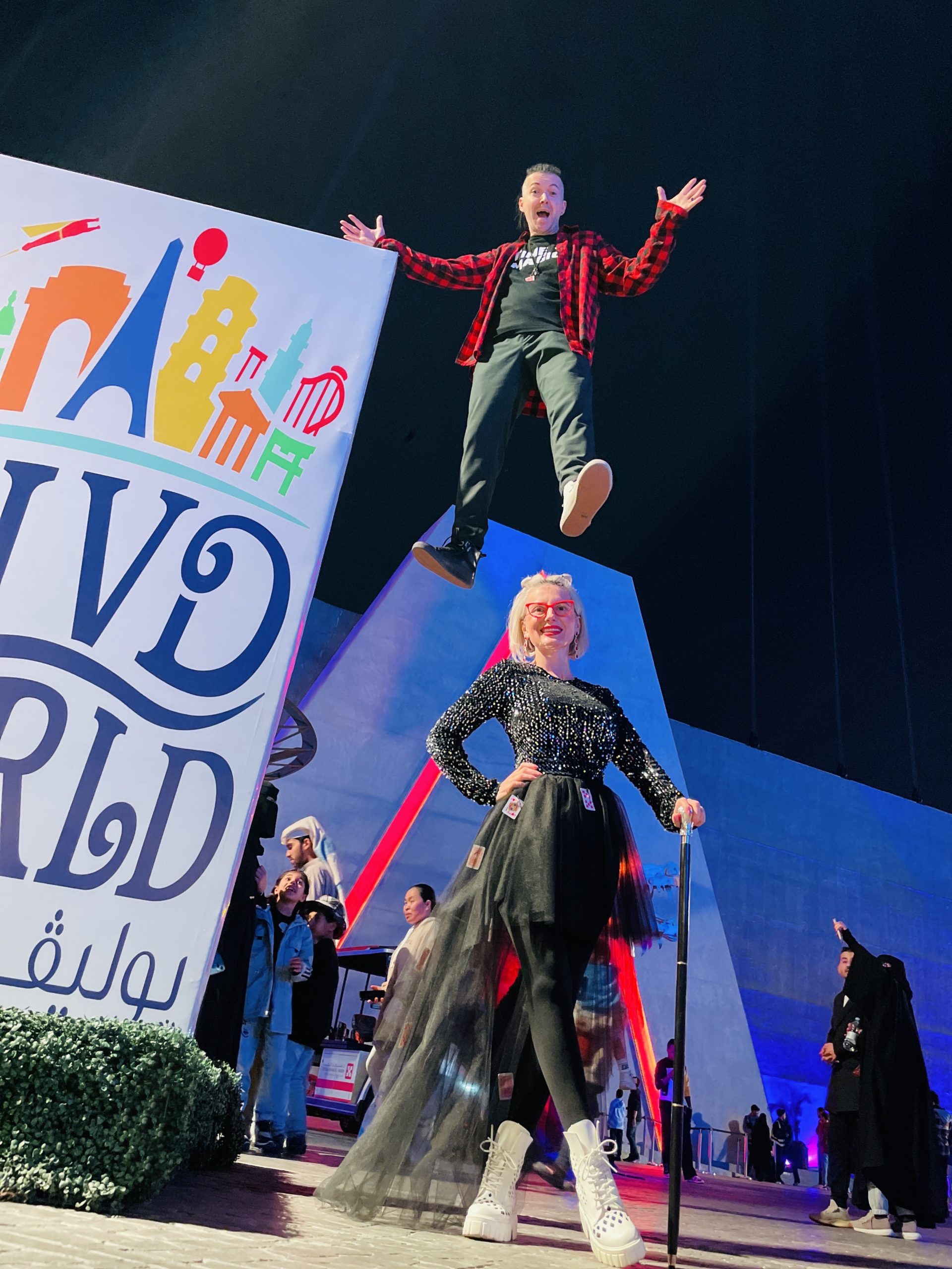 Anul trecut am avut 62 de reprezentații, chiar înainte de Crăciun, în Riad, capitala Arabiei Saudite. Și a fost un succes fantastic. Am fost și în Dubai recent, am avut tot felul de evenimente. Am fost și în Africa. În Europa facem foarte multe evenimente pentru că, în primul rând, sunt foarte mulți români plecați în diaspora care vor spectacole frumoase, care să le aducă aminte de casă și văzând tot felul de premii pe care eu le-am primit, ne cheamă să facem. De exemplu, mergem și facem nunți de români afară. Eu am un premiu de cea mai la modă surpriză pentru nunți. Călătorim foarte mult cu spectacolul de nunți. Călătorim foarte mult în general pentru că ne cheamă românii afară, se mândresc cu spectacolul pe care îl avem noi, îl facem pentru români și pentru invitații pe care îi primesc.