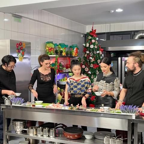 Da, aici am făcut, în România, pentru diplomă. Am urmat cursul la Brașov și am învățat cum să conduc o bucătărie, cum să coordonez angajații. Și la emisiunea Chefi la cuțite am învățat foarte mult cum să lucrez cu echipa.