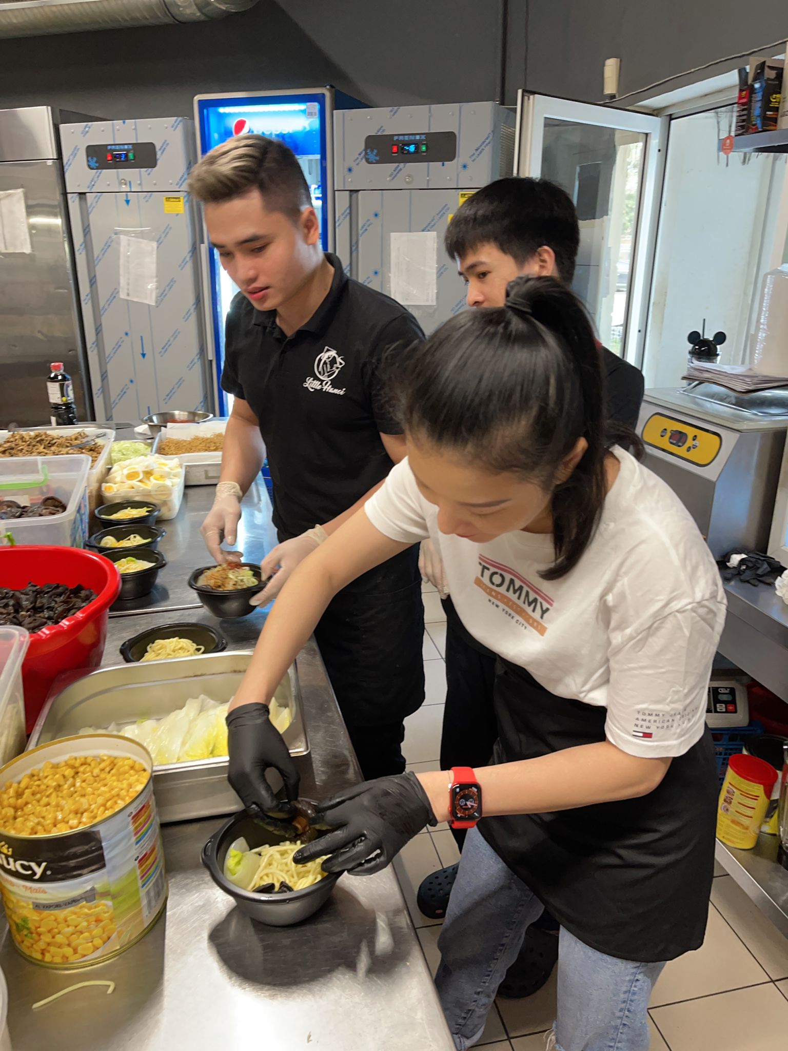 Rețetele din meniu eu le-am făcut și am nevoie de oameni harnici, cu pasiune. Și atunci fac eu training, fără probleme. În bucătărie lucrez doar cu vietnamezi.
