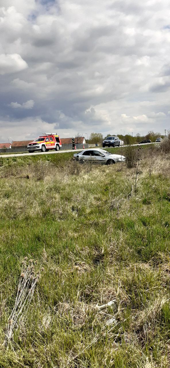 Accident de circulație, joi, în Chevereșu Mare. Un autoturism în care se aflau patru persoane s-a răsturnat în afara drumului după ce șoferul a pierdut controlul volanului. Cei implicați în accident au primit primul ajutor de la câțiva jandarmi lugojeni care veneau la Timișoara pentru a dona sânge.