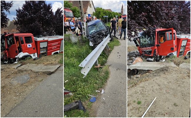 Accident cu șapte victime, sâmbătă după-masă, în Recaș. Au fost implicate un autoturism în care se afla doar șoferul și o autospecială a Serviciului Voluntar pentru Situații de Urgență din Recaș, care se deplasa la o intervenție. A fost alertat elicopterul SMURD CS, unul dintre răniți fiind transportat în stare gravă la spital.