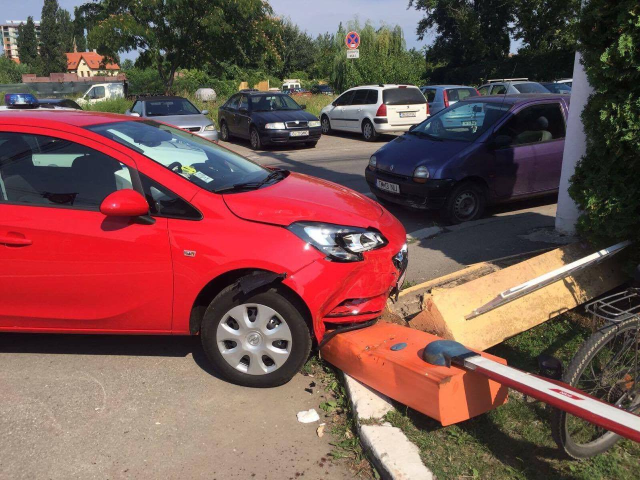 Sperietură zdravănă pentru angajații IPJ Timiș, duminică după-masă. Polițiștii au fost scoși din monotonie de o șoferiță care a încurcat frâna cu accelerația și a intrat cu mașina în bariera și gardul inspectoratului. Femeia nu mai condusese de mult, le-a povestit ulterior oamenilor legii.