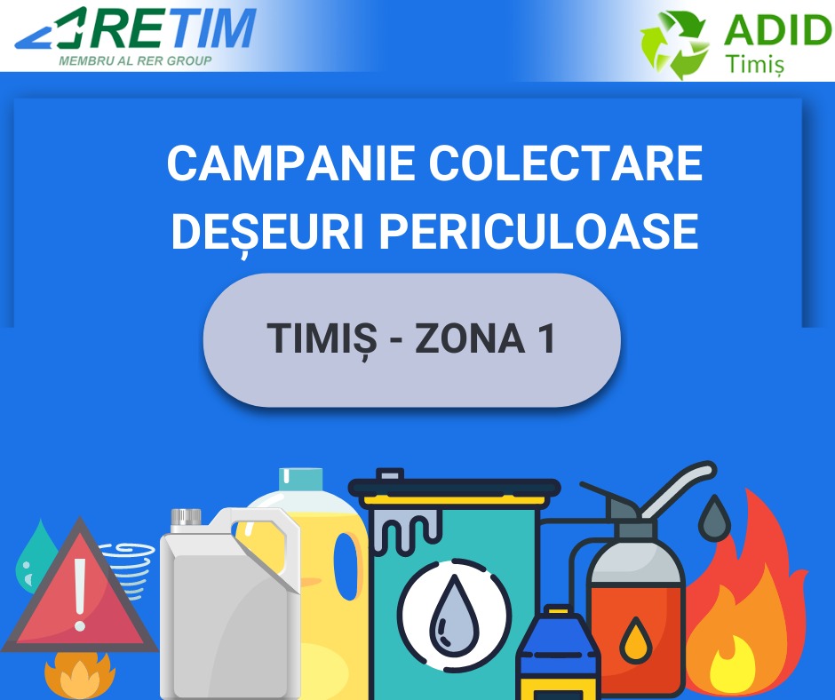 ADVERTORIAL. În perioada 31 octombrie – 29 noiembrie 2022 RETIM și ADID Timiș organizează o nouă campanie prin care se colectează gratuit deșeuri periculoase din menajer. Aveți mare grijă cum gestionați aceste deșeuri pentru că dacă acestea sunt abandonate în locuri neamenajate pot polua grav mediul înconjurător! Păstrați-le în gospodărie și debarasați-vă legal de ele doar în spații special amenajate și la operatori autorizați.
