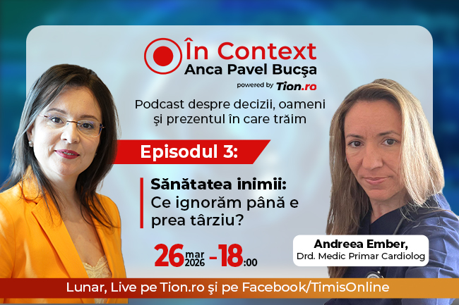 Semnele problemelor cu inima sunt adesea ignorate, iar mulți oameni ajung la medic abia când situația devine îngrijorătoare, deși prevenția și controalele regulate pot face diferența. Despre semnele care nu trebuie ignorate, obiceiurile care afectează inima și ce înseamnă prevenția se va discuta în episodul 3 al podcastului „În Context cu Anca Pavel Bucșa”, care o are invitată pe drd. Andreea Ember, medic primar cardiolog.