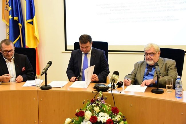 Universitatea de Vest Timişoara va beneficia din plin de experienţa academică germană, după ce a semnat un acord cu Forumul de Cooperare Bilaterală Româno – German. Acordul va însemna pentru studenţii UVT posibilitatea de a beneficia de proiecte de studii de primă mână, accesul la programe de internship în Germania sau la firme cu acţionariat german din România, dar şi posibilitatea participării la seminarii şi întâlniri cu personalităţi germane.