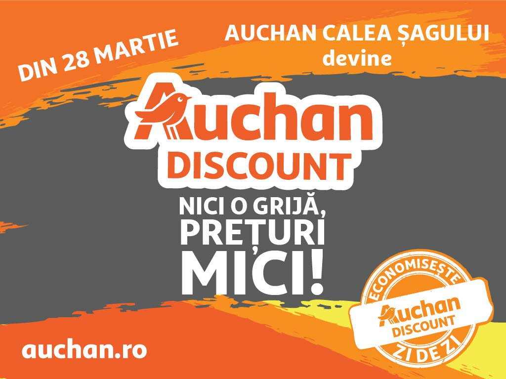 ADVERTORIAL. Începând de marți, 28 martie, magazinul Auchan Calea Șagului din Timișoara se transformă în Auchan Discount și oferă timișorenilor mii de produse la prețuri mici și o mulțime de avantaje pentru clienții fideli. Astfel, magazinul Auchan Discount devine locul în care clienții pot economisi zi de zi, având prețuri mici la peste 5000 de produse alimentare și nealimentare. În plus, aceștia sunt invitați să își pregătească din timp cardul de fidelitate MyCLUB Auchan pentru a beneficia de extra avantaje.
