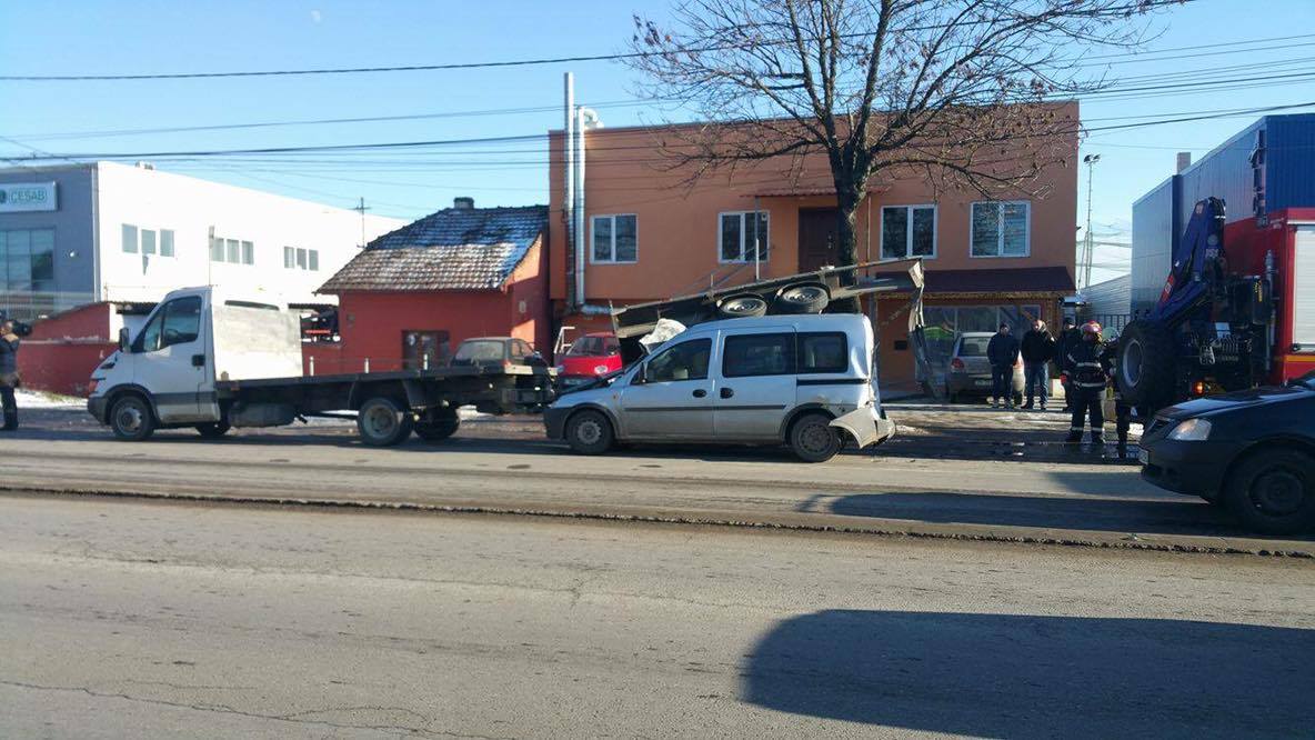 Accident de circulație, vineri seara, lângă localitatea timișeană Săcălaz. O utilitara încărcată cu roșii a ajuns în afara carosabilului, după ce marfa a intrat în balans.