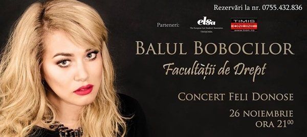 Facultatea de Drept din cadrul Universității de Vest din Timișoara pregătește un eveniment cu totul special pentru studenți. Este vorba despre Balul Bobocilor, de la care nu vor lipsi momentele artistice impresionante și probele surpriză. Concret, distracția va fi în toi până dimineața, iar petrecăreții se vor putea bucura și de un super concert marca Feli Donose.