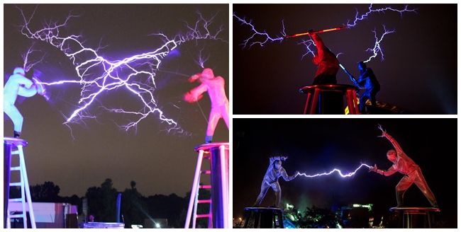 Studenții și timișorenii care au fost aseară în Complexul Studențesc au putut asista la premiera spectacolului Bega! Prezintă The Lightning Project, un show spectaculos de zece minute, în care doi artiști îmbrăcați în costume de lanț din oțel inoxidabil se duelează cu fulgere, generând arcuri electrice de 4 milioane de volți. Dacă ați ratat primele reprezentații, mai aveți șansa să vedeți showul până în 22 martie. Problema e că în fiecare zi spectacolul se mută în alt cartier din Timișoara, iar locația este anunțată cu doar zece ore înainte...