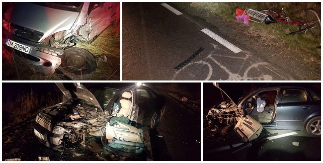 Accident de circulație, miercuri dimineață, pe drumul ce leagă Timișoara de Sânnicolau Mare, în zona localității Dudeștii Noi. Un bărbat de 63 de ani și-a pierdut viața după ce a fost lovit de un autoturism care nu l-a observat pe partea carosabila. Victima mergea pe lângă bicicletă și nu purta elemente reflectorizante.