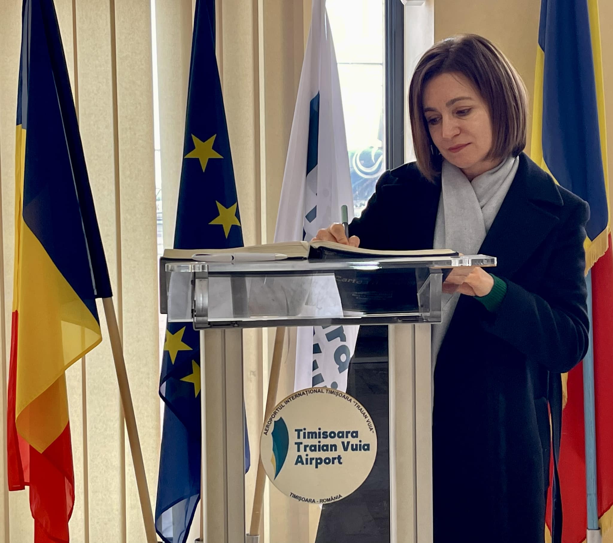 Maia Sandu, președinta Republicii Moldova, prima laureată a nou-instituitului „Premiul Timișoara Pentru Valori Europene”, este sâmbătă la Timișoara pentru a-și primi distincția și a participa la ceremonia aferentă. Premiul vine și cu o sumă de 30.000 de euro, bani strânși din sponsorizări ale unor companii private.