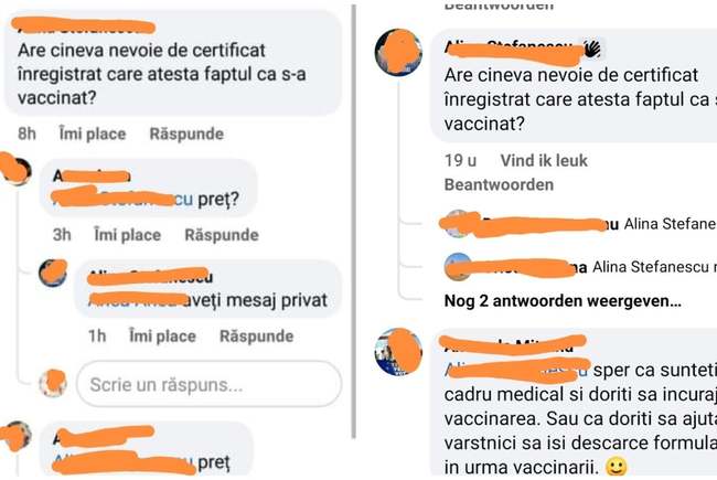 „Are cineva nevoie de certificat înregistrat care atestă faptul că s-a vaccinat?”. Aceasta este întrebarea pusă pe un grup de Facebook al mămicilor din Arad, de o „comerciantă” care, spune ea pe profilul de pe rețeaua de socializare, lucrează la Secția de Anestezie și Terapie Intensivă a Spitalului Județean Timișoara. UPDATE. Reacția din partea conducerii Spitalului Județean Timișoara: Nu există o astfel de persoană în rândul personalului.