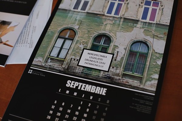 Direcția Județeană pentru Cultură Timiș a realizat un calendar... mai puțin obișnuit. Vorba directorului instituției, Sorin Predescu, „un calendar pe care nu vrei neapărat să-l pui pe perete”. Este un calendar în care sunt prezentate problemele clădirilor și obiectivelor de patrimoniu din Timiș. Mai precis, problemele conservării acestor obiective, plus legile pe care le încalcă prin lăsarea lor de... izbeliște.