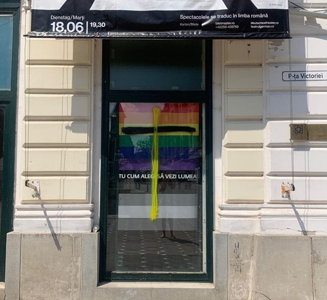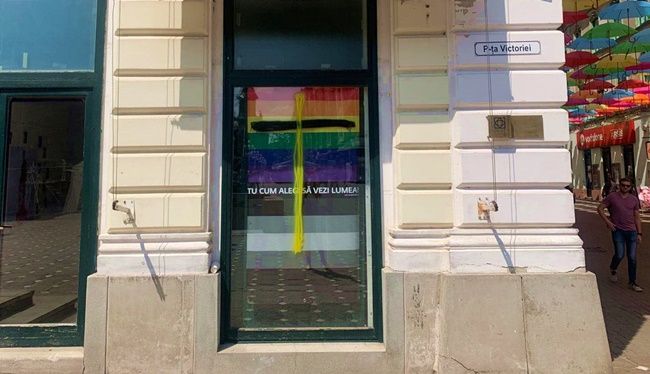 Individul care a „desenat” o cruce pe geamul unui spațiu al primăriei din Piața Victoriei, în semn de protest față de un eveniment organizat de comunitatea LGBT, purta șapcă și nu a putut fi identificat de Poliția Locală. Oamenii legii refuză să facă publice imaginile cu vandalul.