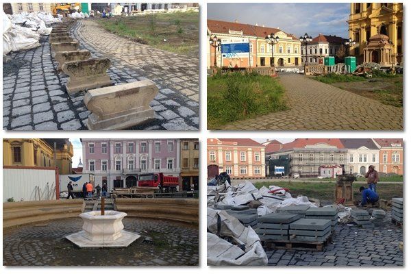 Se lucrează în sfârșit în centrul Pieței Unirii. Muncitorii firmei Romprest aproape că au terminat de pavat cea mai frumoasă piață din Timișoara și au început să lucreze la aleile din interiorul acesteia. A fost pregătită și cărămidă roșie, pentru punerea în valoare a vestigiilor descoperite de arheologi – drumul pietonal din fața Domului.