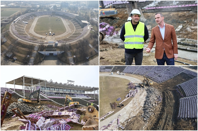 Avansează lucrările de demolare a bătrânei arene „Dan Păltinișanu”. Ritmul este unul alert, iar Alfred Simonis, președintele Consiliului Județean Timiș, este de părere că demolarea ar putea fi gata cu două luni mai repede înainte de termenul stabilit, stabilit la opt luni.