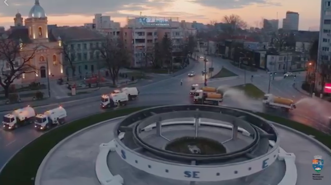 Deși ar fi trebuit ca străzile Timișoarei să fie dezinfectate de mai multe ori de trei săptămâni încoace, reprezentanții primăriei încă așteaptă substanțele ca să le poată spăla. Primarul Robu spune că se va folosi o tehnologie mai spectaculoasă, dar... nu poate să spună.
