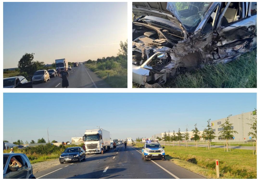 Accident grav de circulație, pe drumul care leagă Timișoara de Lugoj, în localitatea timișeană Chizătău, joi seara. Cinci persoane au fost rănite după ce un autoturism a intrat pe contrasens într-o curbă și s-a izbit violent de un microbuz.
