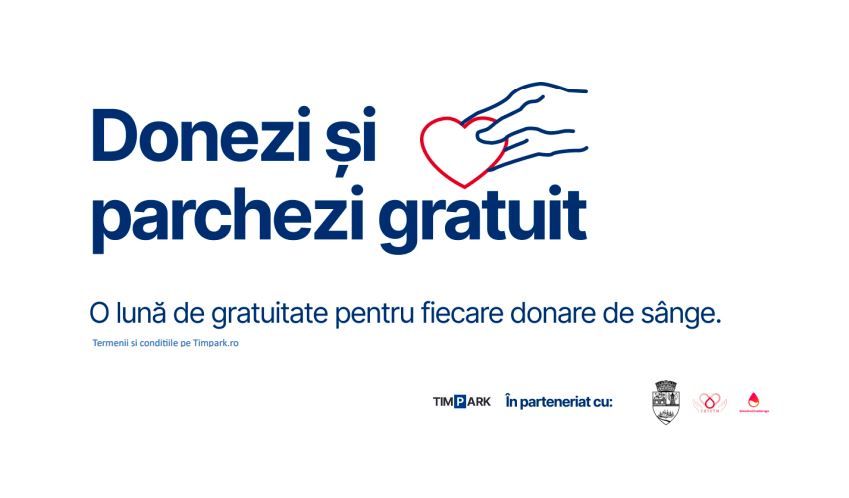 Serviciul Public de Interes Local pentru Administrarea Parcărilor Publice din Municipiul Timișoara - TIMPARK reamintește proprietarilor de autovehicule despre inițiativa pusă în aplicare în luna aprilie 2022, prin care pot obține un abonament gratuit, de tip COMBINAT, pentru staționarea în zonele roșie, galbenă și albastră, timp de o lună de zile, pentru persoanele care donează sânge.
